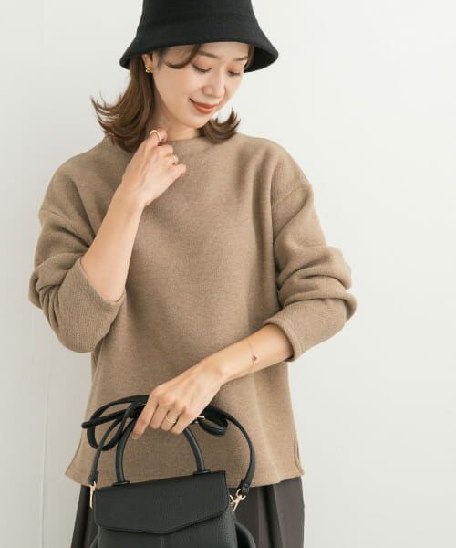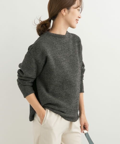 表面感のあるメランジ素材を使用したボトルネックのプルオーバー。