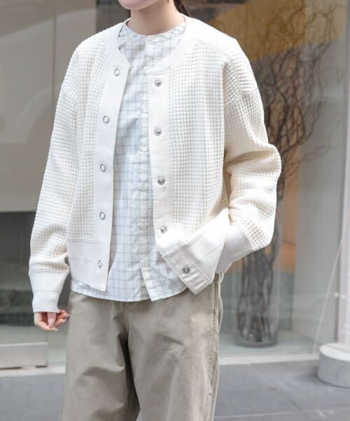ふっくらと表情豊かなワッフル素材で編み立てたカーディガンが好評につき今季も登場。