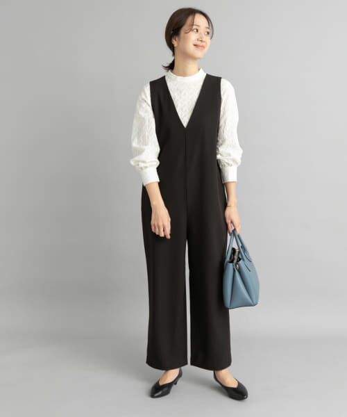 上品な印象で着ていただけるオールインワンを、オンオフ使えるシンプルなデザインンでご用意。