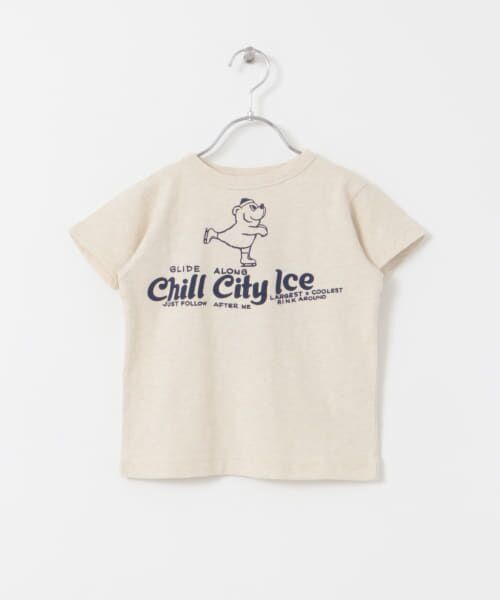 スケートしているクマがプリントされた半袖Tシャツ。
