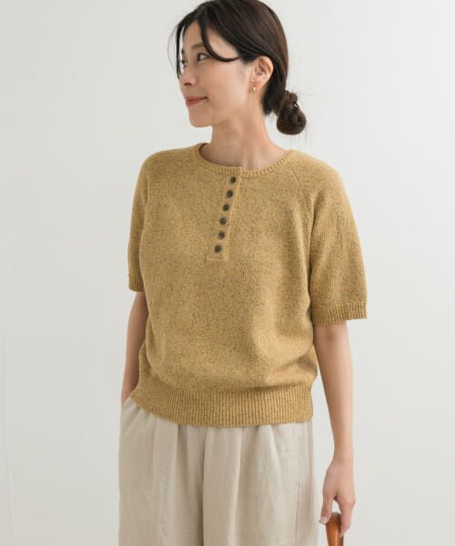 白黒の糸が絶妙に混ざり合ったMIXメランジの半袖ニットは、シンプルでありながらも存在感のある一枚。