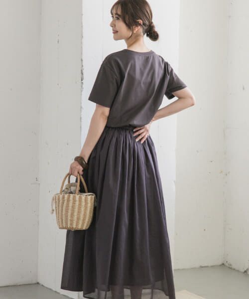 半袖カットソーと布帛のギャザースカートがコンビになったワンピースが今シーズンも登場。