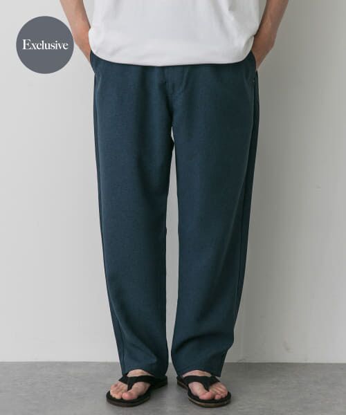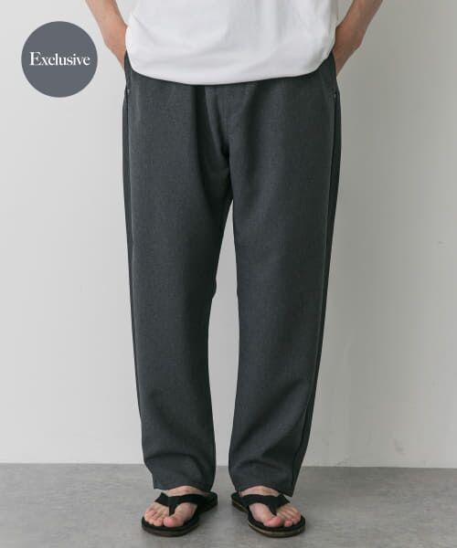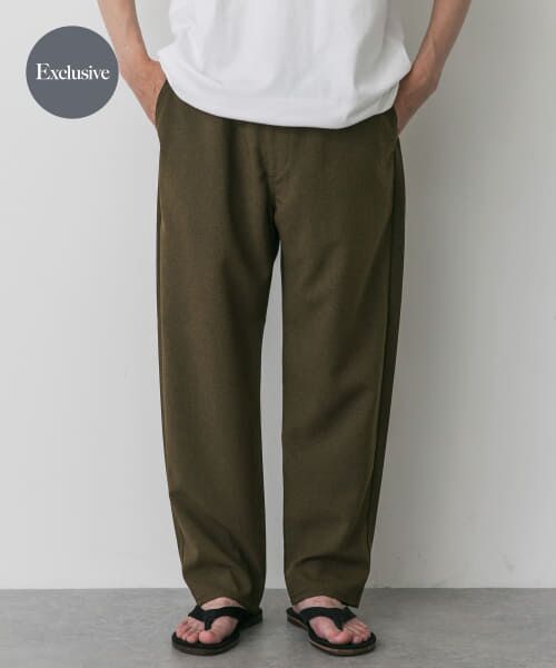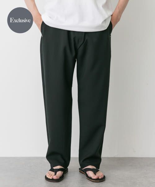 サイズが一つしかないのでサイズ選びが不要です。サイズレンジはXSからXXLまでカバーします。これ1本でワンマイルウエアとして、家族でも、体格の異なる友達ともシェアが可能です。その秘密はウエストの左右に配したBAND ADJUSTERにあります。簡単に片手でアジャストできます。スピンドル(紐)に比べ、幅広のベルト部は強い保持力を発揮します。しかも調整範囲を左右で独立して調整ができ、前後の調整具合で穿きこなしの雰囲気を変えることも可能です。シルエットはモモ周りには適度なゆとりを持たせながら、ヒザからスソにかけて徐々に細くなるテーパードシルエット。着こなしはキレイ目にもカジュアルにも対応します。