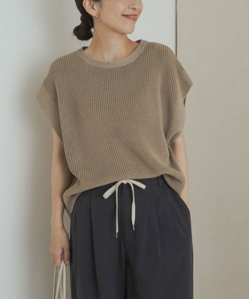 麻風糸×甘編みで軽やかに仕上げた、フレンチスリーブプルオーバーニット