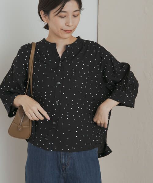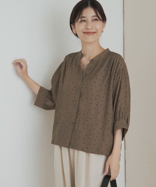 涼やかな楊柳素材とランダムドットで魅せる、大人の上品ブラウス