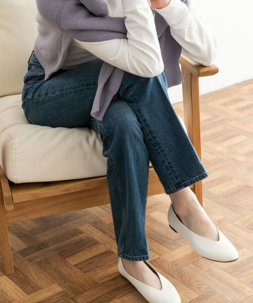 センタープレスを施すことで更にスッキリとしたラインを演出し、カジュアルアイテムながらも女性らしさを追求。