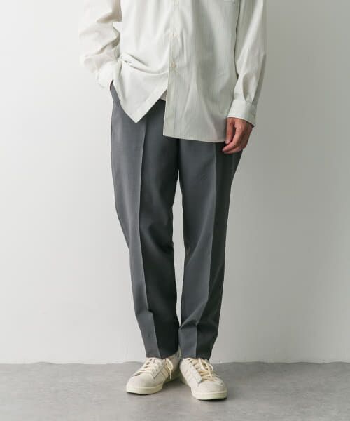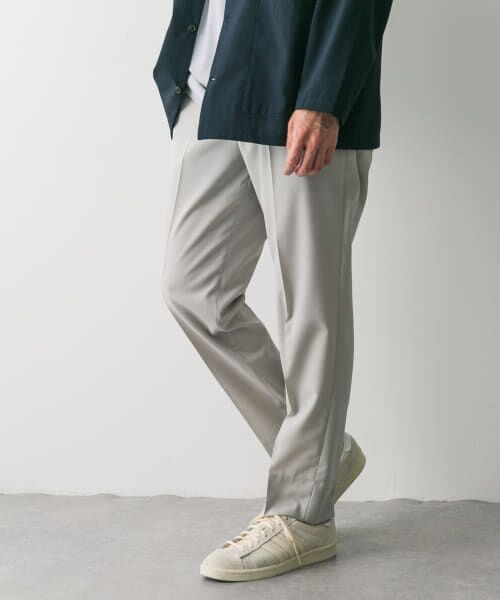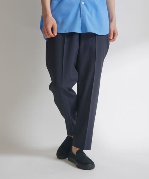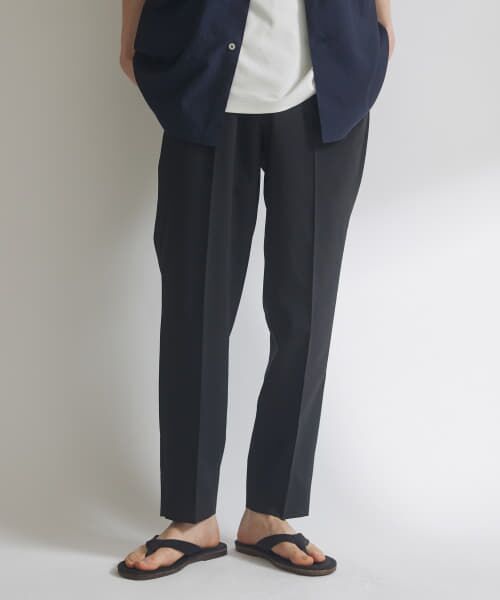 センタープレスがあるため、ジャケットなどのオンアイテムやカーディガンやシャツなどきれいめアイテムとの相性が抜群です。もちろんカットソーなどラフなアイテムとも合わせていただけます。 足元はサンダルからスニーカー、ローファーとどのアイテムとも相性よく合わせていただけます。