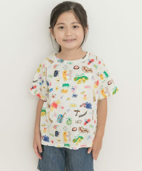 水性マジックで虫さん達を描いたようなイラストの総柄Tシャツ。