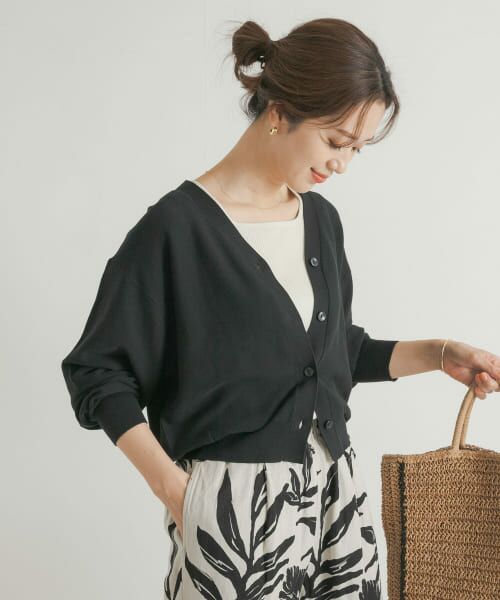 ふっくらとしたシルエットがスタイリングにニュアンスを与えてくれるショート丈のカーディガン。