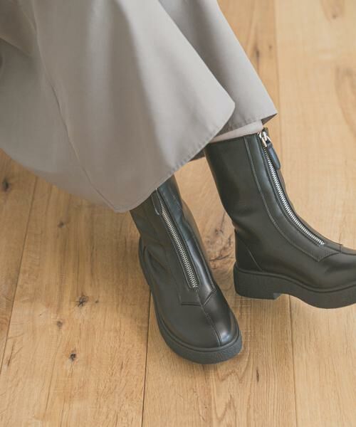 フロント部分にジップを施したアクセントの効いたディティーがポイントのショートブーツが登場。着脱のしやすさはもちろん、足首をスッキリと見せてくれるデザインが魅力です。シンプルながらもこなれ感のあるアイテムですよ♪※サイズ詳細は、当社が独自で計測したサイズです。【スタッフ着用コメント】試着サイズ : M甲幅に少しゆとりがありました。サイズ感はぴったりでした◎[スタッフデータ]普段の着用サイズ : 23.0~23.5cm足長 : 22.5cm足囲 : 21.5cm足幅 : 普通※履き心地には個人差がございますので、あくまでも目安としてご覧ください。※靴箱破損につきましては、商品に不良が無い場合に限り出荷させていただいております。予めご了承ください。※商品画像は、光の当たり具合やパソコンなどの閲覧環境により、実際の色味と異なって見える場合がございます。予めご了承ください。※商品の色味の目安は、商品単体の画像をご参照ください。▼お気に入り登録のおすすめ▼お気に入り登録商品は、マイページにて現在の価格情報や在庫状況の確認が可能です。お買い物リストの管理に是非ご利用下さい。