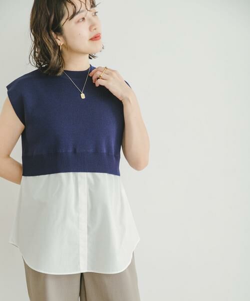 きれいめで上品な印象のミラノリブニットと軽やかな布帛生地を重ね着しているようなドッキングデザインに仕立てた1着。ニット素材ながらサラッとした着心地とスッキリとしたシルエットが魅力◎トレンドのY字ネックレスなど、ロングシルエットのアクセサリーとの相性も抜群ですよ♪スッキリとしたパンツと合わせてコンサバっぽいスタイルはもちろん、柄ボトムを合わせて今年っぽいコーデもオススメです。【2023 Spring/Summer】※商品画像は、光の当たり具合やパソコンなどの閲覧環境により、実際の色味と異なって見える場合がございます。予めご了承ください。※商品の色味の目安は、商品単体の画像をご参照ください。▼お気に入り登録のおすすめ▼お気に入り登録商品は、マイページにて現在の価格情報や在庫状況の確認が可能です。お買い物リストの管理に是非ご利用下さい。