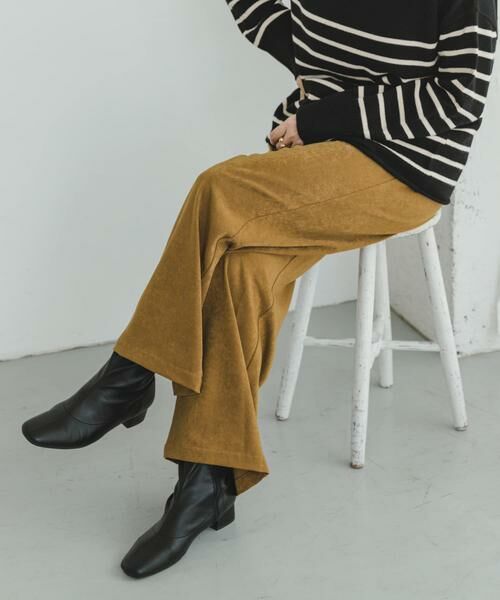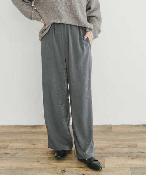 微光沢な表情で上品な印象のパイルポンチ生地で仕立てたワイドパンツ。ゆったりとしたシルエットとウエストゴムの楽ちんさでストレスフリーな着心地が魅力◎ニュアンスを効かせたカラーリングで、多彩なコーディネートにもマッチします。