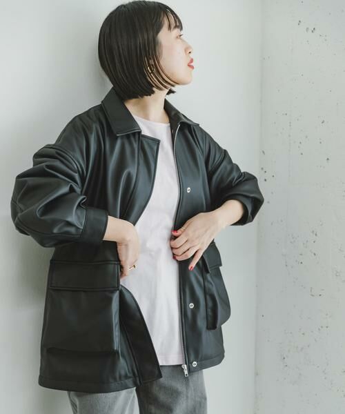 マットなフェイクレザーがヴィンテージ感のあるスタイリングを演出してくれるエッジの効いたジャケット。ヒップにかかる長めの着丈で、ざっくりとしたシルエットが特徴。しなやかな生地で窮屈感のな着心地が魅力。フロント部分にジップとスナップボタンを施しているので、寒さ対策にも一役かってくれますよ。インナー次第で春・秋・冬の3シーズン着こなせる1着です。