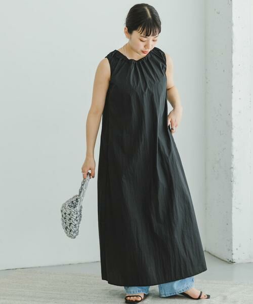 まるでペーパーのような独特な生地感と軽やかさが魅力のワンピース。首元にギャザー×リボンを施しているので、気分やスタイリングに合わせてキュッと絞ってルックスに変化を加えるのもオススメ◎デニムや柄のボトムなども好相性です♪