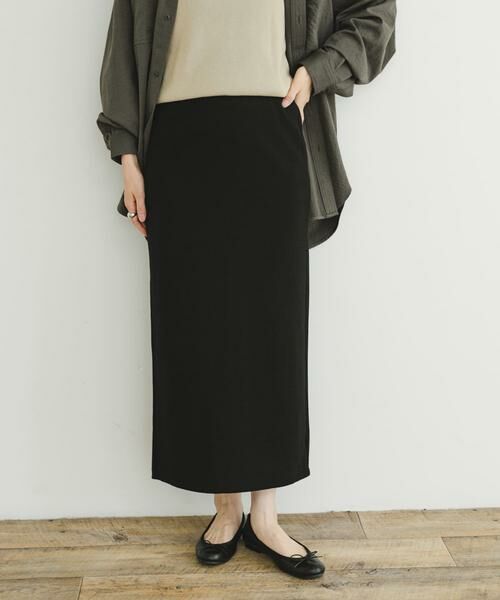細かなリブの表情がシンプルながらこなれ感のある印象のロングスカート。Iラインながら程よい身幅とストレッチの効いた生地で着心地抜群◎オーバーサイズのシャツやカットソー、スウェットなどを合わせた今っぽさのあるスタイリングをお楽しみいただけますよ♪シーズンに合わせてざっくりとしたニットを合わせても可愛く決まる、ロングシーズン着回しの効くアイテムです。