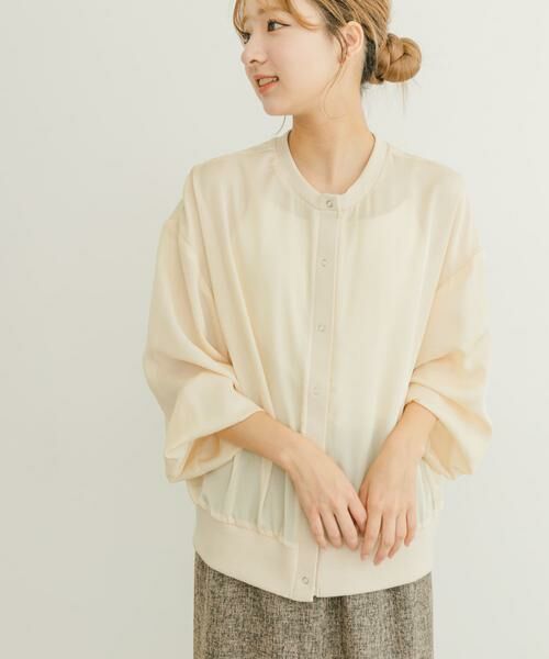 サラサラとした生地で軽やかな着心地が特徴のブルゾン。大人っぽさ漂う透け感のあるシアー素材で、シンプルながらこなれ感のあるスタイリングを演出してくれます。スナップボタンで着脱ができるカジュアルなディテールにも注目。エアコン対策や秋口の軽い羽織りアイテムとしても重宝しますよ◎