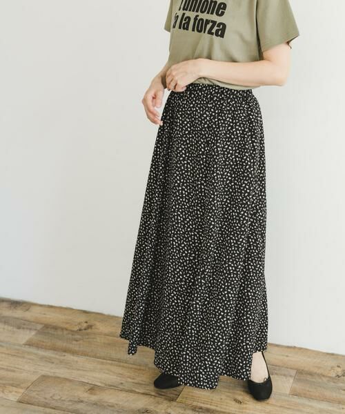 ニュアンスを効かせたドット柄のようなプリントデザインが目を引くロングスカート。程よいハリと優しく広がるフレアシルエットが大人ライクなスタイルを完成させてくれる1着。きちんと感のあるルックスと、ウエストが総ゴムの楽な着心地のギャップが魅力の1着です。