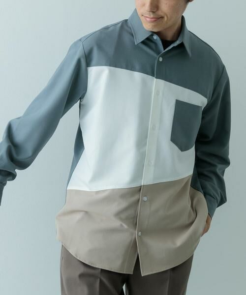 異なるカラーで切替えたダイアゴナルスイッチシャツ。落ち着いた配色とスマートな印象ながら個性的で、奥行きのある着こなしに一役買ってくれます。