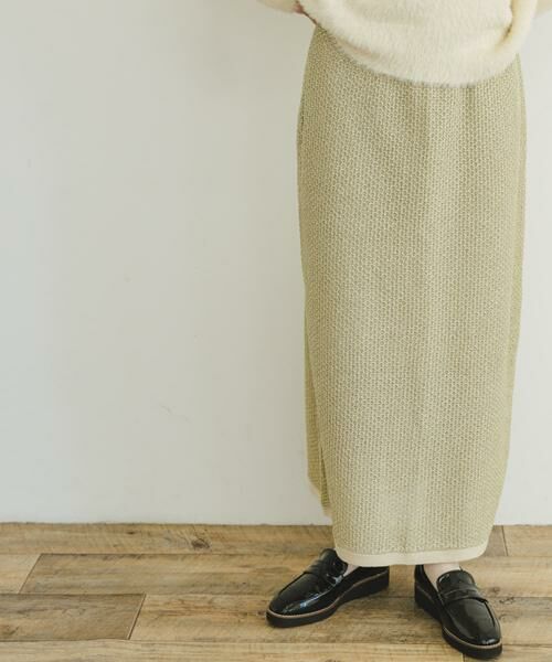 ラメ糸の細やかな煌めきがニット素材ながらほっこりなりすぎず大人っぽいスタイリングを完成させてくれるメッシュデザインのスカート。緩やかにAラインに広がるデザインなので体のラインを拾わず、スッキリとしたルックスと程よいゆとりのある着心地の両方を叶えました。ドレッシーな印象も兼ね備えているので、シャツやブラウスなどカッチリとしたトップスとも好相性ですよ。