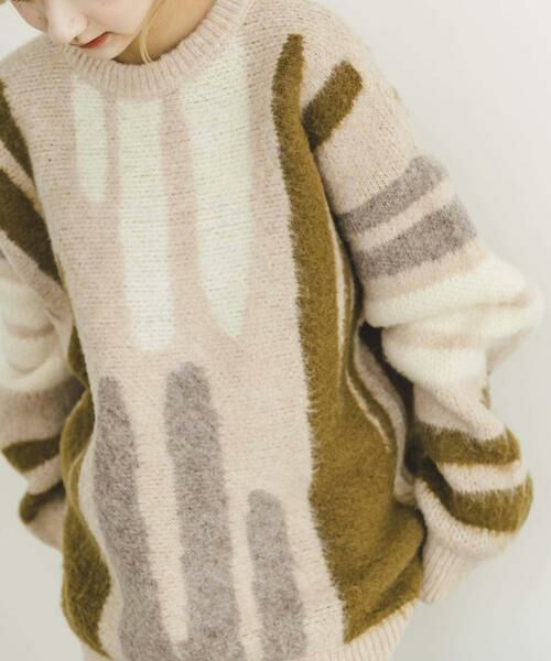 パッと目を引く大柄デザインがコーディネートの主役になること間違いなしのビッグサイズのニット。シーズンムード高まるふわふわとしたシャギー生地が特徴です。体型カバー×華奢見せが叶うオーバーシルエットが魅力です。ボトムを選ばず着回していただけますよ◎