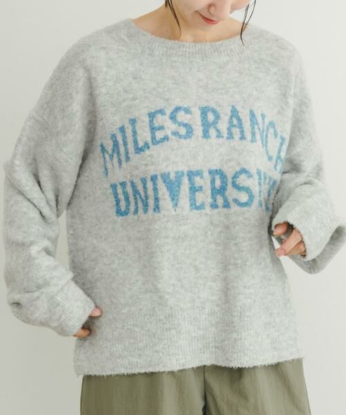 柔らかく弾力のある素材感が特徴のブークレーニット。配色カラーでデザインされたフロントロゴがカジュアルさを演出。全体的にゆったりとしたシルエットで、カットソーやシャツ・ブラウス、ワンピースなどをレイヤードしてもストレスなく着用していただけます。