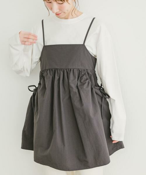 ポケットのギャザーデザインがポイントのキャミソール。長めの丈感で体形カバーしつつ、抜け感のあるスタイルに。合わせるインナー次第でカジュアルにもフェミニンにも雰囲気を変えられる万能アイテム。Tシャツやタートルネックとレイヤードすればデイリーに、シアートップスやブラウスと合わせれば女性らしい印象に。季節を問わず活躍する一枚です。