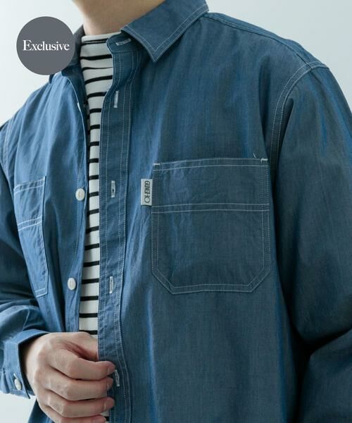 シャンブレー素材ならではの爽やかな風合いと、ワークテイストのディテールが絶妙にマッチした一着。