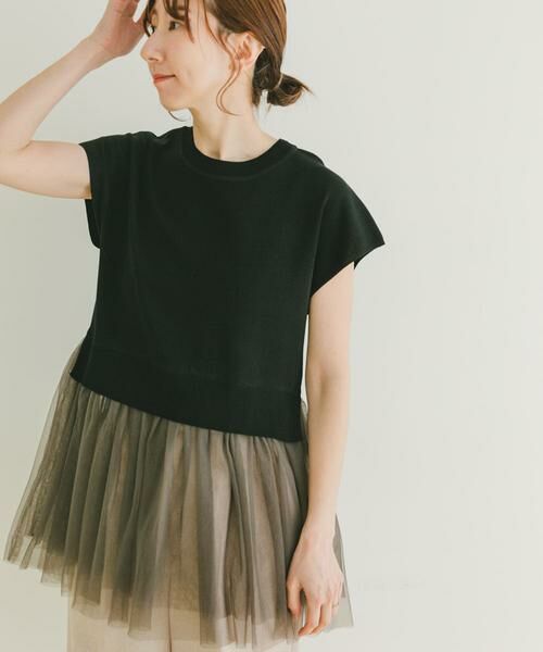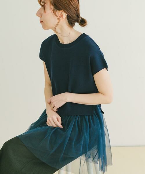 しっかりとした編み地の総針ニットに、軽やかなチュール素材をドッキングしたデザインが特徴の一枚。シンプルながらも裾にチュールを施すことで、程よい甘さと華やかさでフェミニンな印象に。 一枚で主役になるアイテムなので、ボトムスはシンプルなデニムやテーパードパンツと合わせるだけでこなれ感のあるスタイリングが完成します。