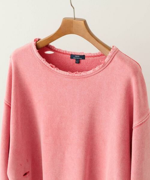 トレンドライクなダメージ加工を施した裏毛クルーネックスウェット