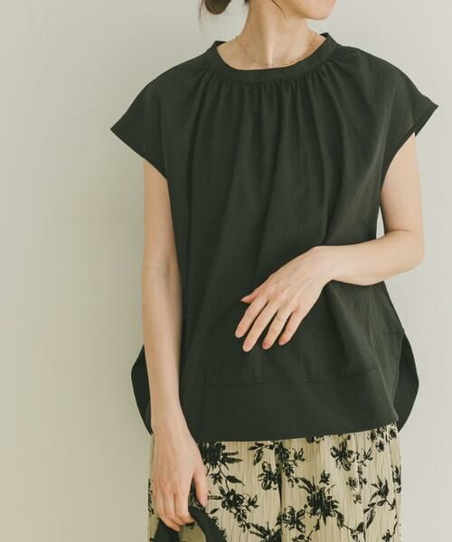 ふんわりとギャザーを寄せた首元のデザインが、シンプルながらも華やかさを添える一枚。裾は緩やかにラウンドさせ、腰まわりを自然にカバーしてくれるやや長めの丈感に。抜け感のあるスリーブと軽やかな素材感で、暑い季節にも快適な着心地です。どんなスタイルにも合わせやすいブラック、ホワイトのベーシックカラー展開で、オンにもオフにも活躍する一枚です。