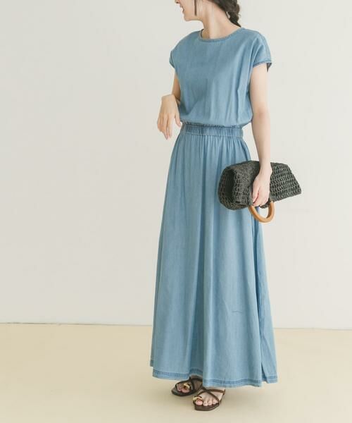 柔らかく落ち感のあるレーヨン混デニムを使用した一枚は、軽やかで涼しげな着心地が魅力。高めに入ったウエストギャザーが自然とスタイルアップを叶え、動くたびにふんわりと揺れるシルエットが女性らしさを引き立ててくれます。肩をやさしく覆うフレンチスリーブが、気になる部分をさりげなくカバー。落ち着いたワンウォッシュとブルーの着回しやすい2色展開。どちらも夏の日差しに映えるカラーです。洗濯機で洗えるので、デイリー使いにもぴったり。一枚でナチュラルなリラックススタイルを楽しめます。