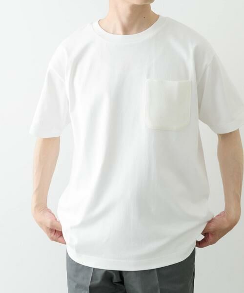 ポケット部分をニット生地に切り替えた、シンプルながらもサマになるクルーネックTシャツ。