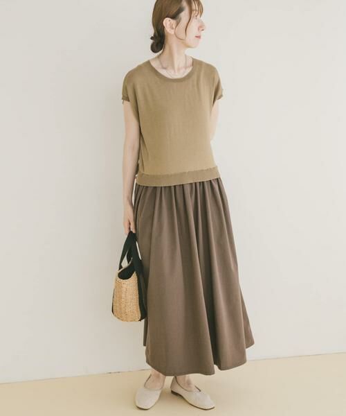 トップス部分はニット、スカート部分は落ち感のある布帛素材をドッキングした、メリハリのあるデザインが魅力のワンピース。フレンチスリーブで肩まわりはすっきり見え、ウエスト切り替えの位置も絶妙なので、スタイルアップ効果も◎素材のコントラストが、シンプルながらもこなれ感を演出してくれます。忙しい朝でもコーディネートが即完成する頼れる1枚。ワードローブに一枚あると大活躍間違いなしです。