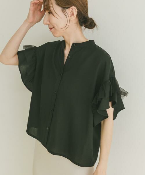 チュールが揺れる、品よく甘い大人の一枚。繊細なチュール素材を重ねた肩のフリルが、女性らしさを引き立てるブラウス。立体感のあるデザインながら、すっきりとした丈感でスマートな着こなしが叶います。ゆったりとしたシルエットに、程よいボリュームとシアー感のある袖が、腕まわりを華奢に演出。ベーシックなカラーに加え、深みのある秋カラーもご用意。オンにもオフにも活躍する、上品で着回し力の高い一枚です。【2025 Spring/Summer】【25SS】※商品画像は、光の当たり具合やパソコンなどの閲覧環境により、実際の色味と異なって見える場合がございます。予めご了承ください。※商品の色味の目安は、商品単体の画像をご参照ください。▼お気に入り登録のおすすめ▼お気に入り登録商品は、マイページにて現在の価格情報や在庫状況の確認が可能です。お買い物リストの管理に是非ご利用ください。
