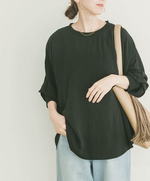 リブ仕様の袖口がボリュームスリーブにさりげないアクセントに。