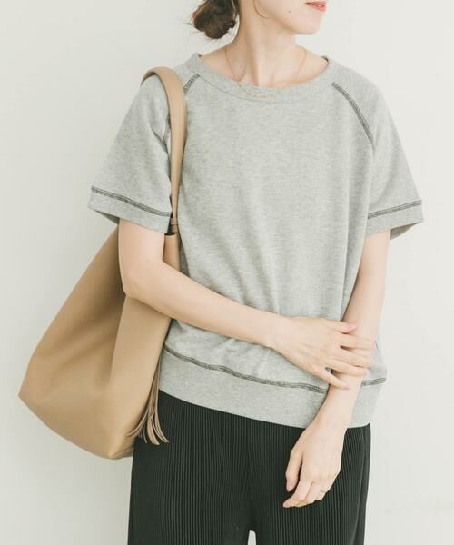 すっきりとした丈感で、どんなボトムスともバランスよく合わせられる半袖スウェット。控えめなラメがカジュアルすぎず、ほどよい華やかさをプラスします。デニムでラフに、スカートでフェミニンにと、幅広いコーデにマッチ。シンプルながらも表情のある素材で、デイリーに着回したくなる一枚です。