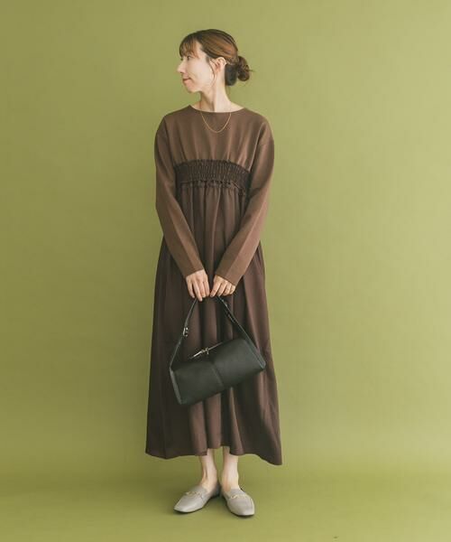 秋らしい落ち着きのあるカラーで仕立てたワンピースは、シャーリングとドッキングデザインが存在感をプラス。一枚でさらりと着るだけでコーディネートが決まり、羽織としても着回せる万能アイテムです。しっかりしたデザインながら、程よい軽さで日常からお出かけまで幅広く活躍します。
