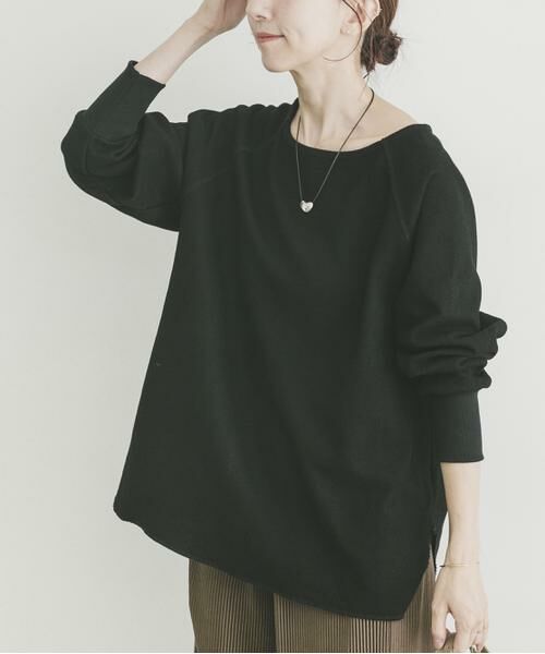 表面感のある素材を使ったオーバーサイズプルオーバーは、体型を拾わずリラックスして着られる一枚。裾のラウンドデザインがワイドパンツとのゆるっとコーデにも自然に馴染み、バランスよく決まります。カジュアルながらもこなれた印象で、デイリーから休日スタイルまで幅広く活躍する、大人の頼れるアイテムです。