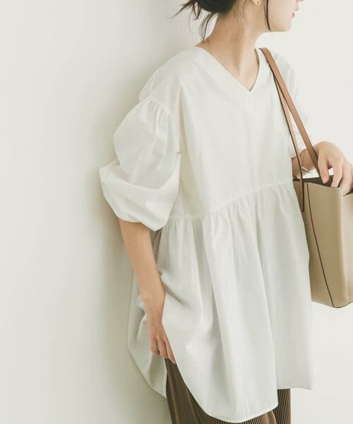 ボリュームスリーブがさりげなく華やかさを演出しつつ、女性らしい抜け感も添えます。