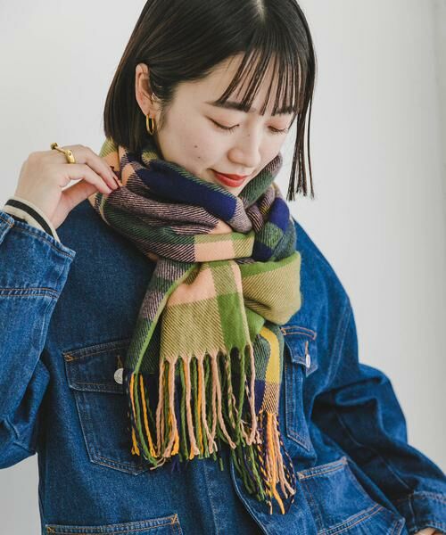 カラフルな色合いのチェック柄がスタイリングのアクセントになること間違いなしのストール。薄手で軽やかな付け心地なので、スッキリとした着用感でお楽しみいただけます◎程よく起毛したシーズンライクな生地にも注目です。