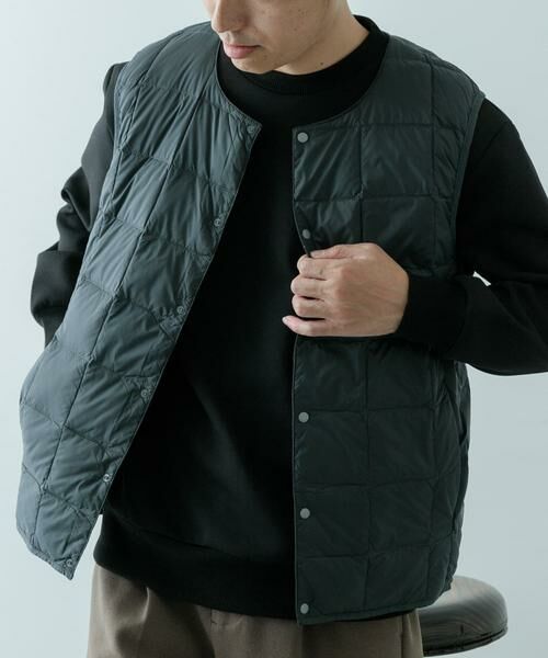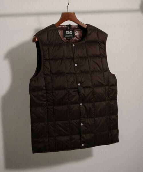 TAIONの定番、ベーシックインナーダウンは、ジャケットやコートの下に着るのはもちろん、Tシャツ・シャツ・パーカーなどの上にも気軽に羽織れる、軽くて暖かく着回しやすいシンプルなデザインが特徴です。