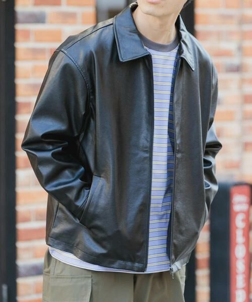 合成皮革を使用し、軽やかな着心地の良さに加え、本革と比べ扱いやすく汎用性が高い一着に仕上がっています。