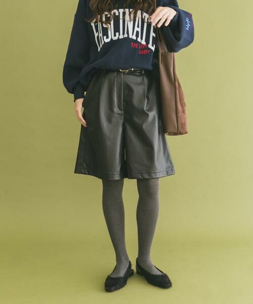 ハードになりすぎないマットな質感のフェイクレザーを使用し、大人の女性にふさわしい上品なショート丈パンツに仕上げました。ハリのある素材感が、着こなしにクラス感とモードな雰囲気をプラスします。シンプルなトップスと合わせるだけで、ワンランク上の秋スタイルが完成。カジュアルにもきれいめにも合わせやすく、秋のワードローブで活躍する一枚です。