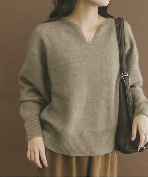 上質なラクーンの毛をブレンドした、柔らかくふんわりとした肌触りが魅力のキーネックニット。首元をすっきり見せるキーネックが、上品な抜け感を演出し、女性らしいデコルテラインを美しく引き立てます。驚くほど軽くて暖かいラクーン素材は、チクチク感が少なく素肌にも心地よい着心地。見た目にもあたたかみのある風合いで、冬の装いを品よく仕上げてくれる一枚です。