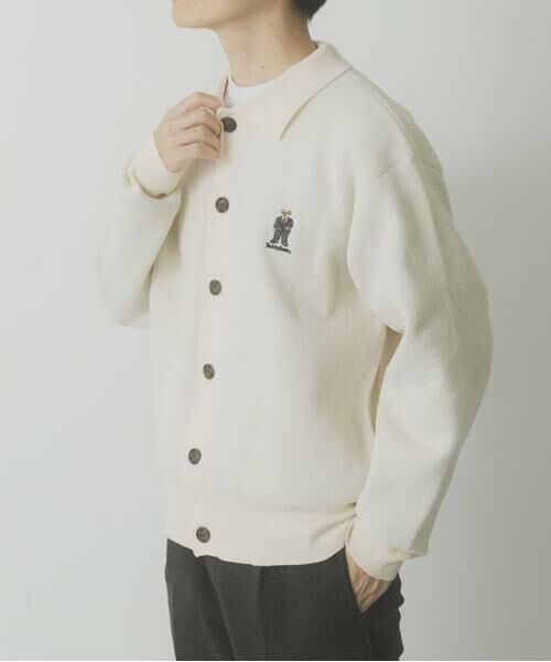 胸元にTeddy Bearのさりげないワンポイント刺繍を施した、表情豊かなニットシャツカーディガン。
