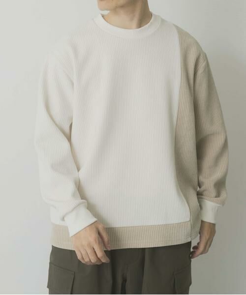 身頃と袖のバイカラー切替が目を惹くクルーネックトップス。シンプルなデザインながら、配色のコントラストがスタイリングに奥行きをプラスし、さりげない個性を演出します。