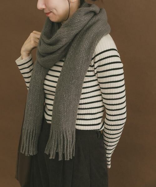 やわらかな肌触りで包み込むストールは、触れるたびに心地よさを感じられる一枚。ふっくらとした糸の中に繊細なラメを織り込み、動くたびに上品なきらめきを放ちます。シンプルなコーディネートにさっと巻くだけで、顔まわりが華やぎ、ぐっと洗練された印象に。見た目のあたたかさと快適な着け心地を兼ね備え、この季節の装いに欠かせないアイテムです。