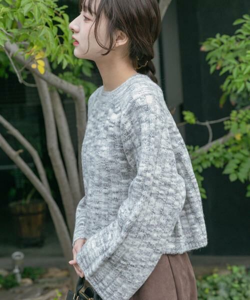 短めのクロップド丈とゆったりしたボックスシルエットで、着るだけでバランスの良いスタイルに。ボリュームのある袖とのコントラストが、さりげなく華奢見えを演出します。首元はクルーネックやボートネックでデコルテをきれいに見せつつ、インナーとのレイヤードも楽しめるデザイン。ざっくり編みとミックスカラーが、こなれた印象と温かみをプラス。デイリーからお出かけまで、幅広く活躍する一枚です。