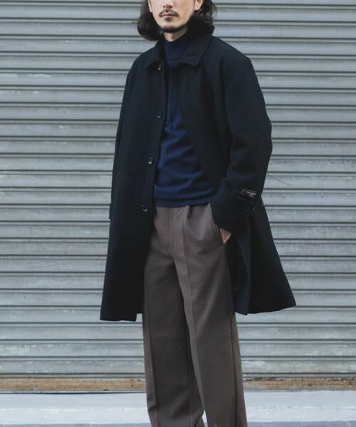 日本有数の毛織物産地・尾州で生産された上質ウールを使用したバルマカンコート。しっかりと目の詰まった素材感が、品格ある大人の佇まいを演出します。長く愛用できるベーシックかつクラシックなデザインで、ややゆとりのあるサイズ感はスーツや厚手ジャケットの上からも快適に羽織れます。ビジネスからカジュアルまで、幅広いシーンで活躍する一着です。