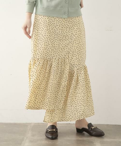 動くたびになびくフレアデザインがさりげなく大人可愛いドットスカート。ウエストラインをタイトシルエットにすることで、上品な仕上がりに。無地のブラウスやカットソーをウエストインしてスタイリングすると◎※商品画像は、光の当たり具合やパソコンなどの閲覧環境により、実際の色味と異なって見える場合がございます。予めご了承ください。※商品の色味の目安は、商品単体の画像をご参照ください。▼お気に入り登録のおすすめ▼お気に入り登録商品は、マイページにて現在の価格情報や在庫状況の確認が可能です。お買い物リストの管理に是非ご利用下さい。